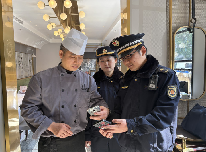 上海市静安区江宁路街道综合行政执法队队员宋洁介绍,我们到经营场所后会亮出“检查码”,被检查人扫码后可以在手机上看到检查信息,比如我们在这家饭店要检查废弃油脂收运台账、油烟设施设置以及垃圾分类情况等事项。